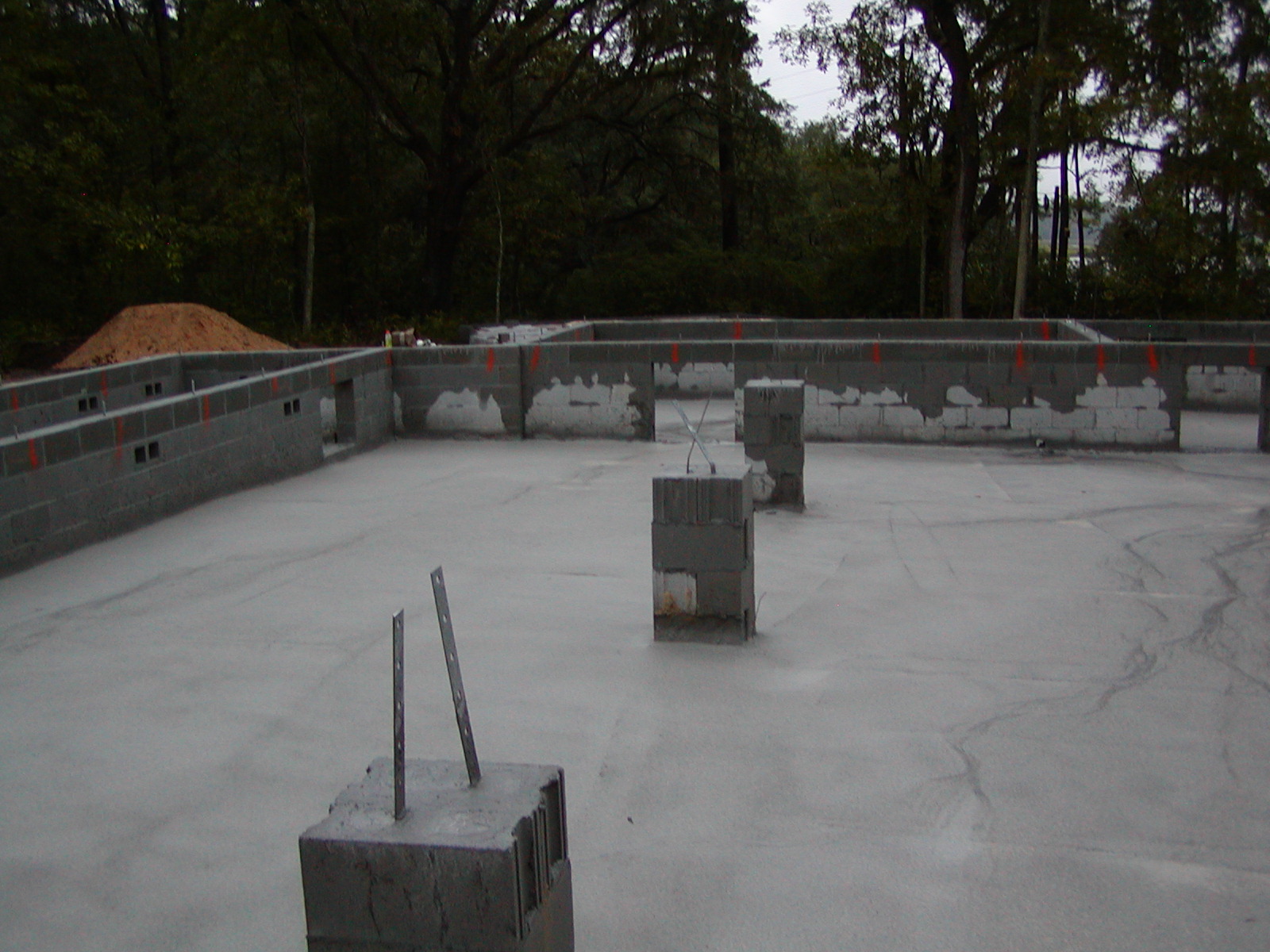 October 4, 2007 -- The center piers support beams in the floor system. The large straps will tie them down to the foundation. Framing is scheduled to begin on Monday. | ![]() |