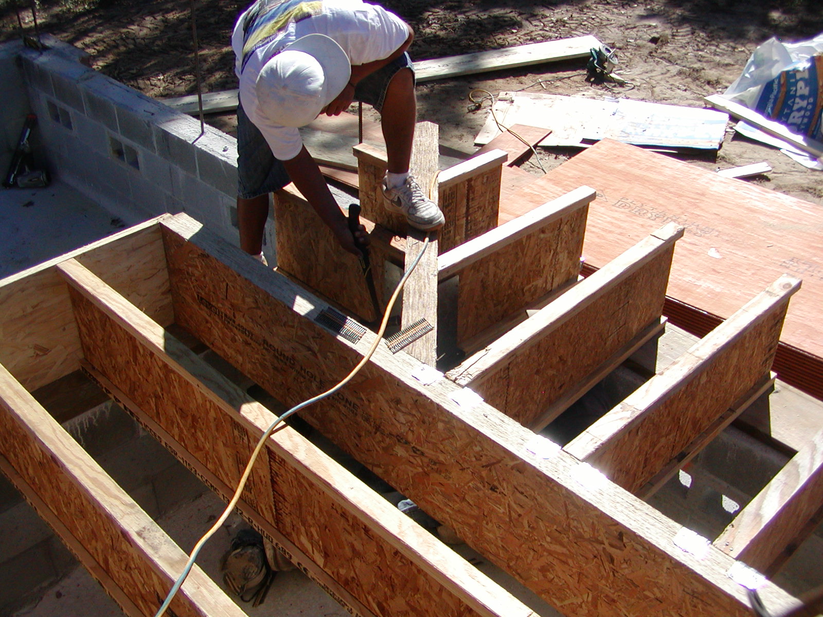 October 11, 2007 -- Most of the subfloor is in place. It is nailed and glued down. The first floor walls will be started today. | ![]() |