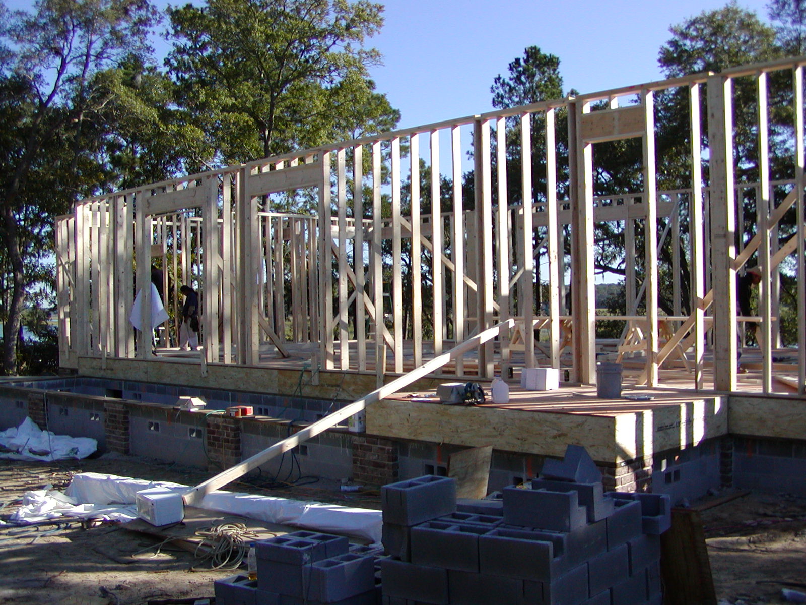 October 12, 2007 -- Walls are going up at the Weiss residence. They are 12 feet tall notice how tall they are compared to the man on the left side of the photo. | ![]() |