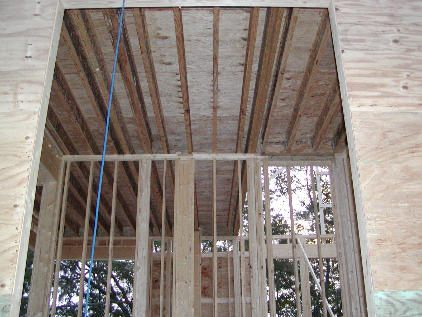 October 19, 2007 -- The second floor system is in place. The subfloor is also installed. This is the view in the rear door. | ![]() |