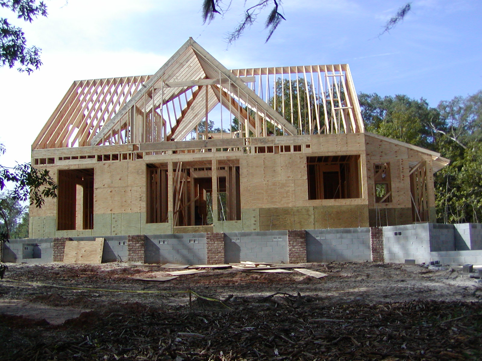 October 29, 2007 -- The front of the house has sheathing . The front door is a double door with a large window on either side and transoms above. | ![]() |