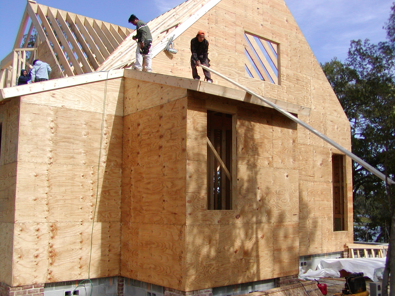 October 29, 2007 -- The shed roofs are on the master bath shower and one closet. | ![]() |