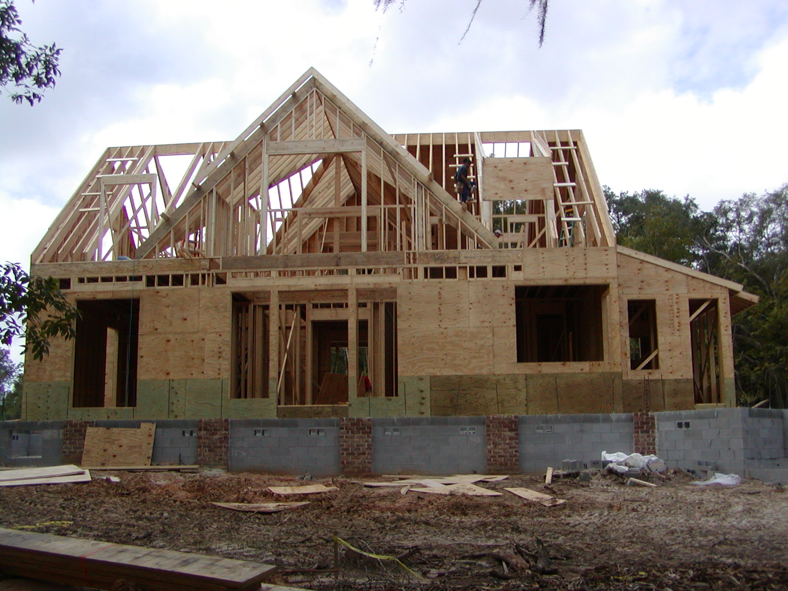 October 31, 2007 -- The front (river side) of the house has dormers that match the ones on the rear. This side also has a large porch that will be built very soon. | ![]() |