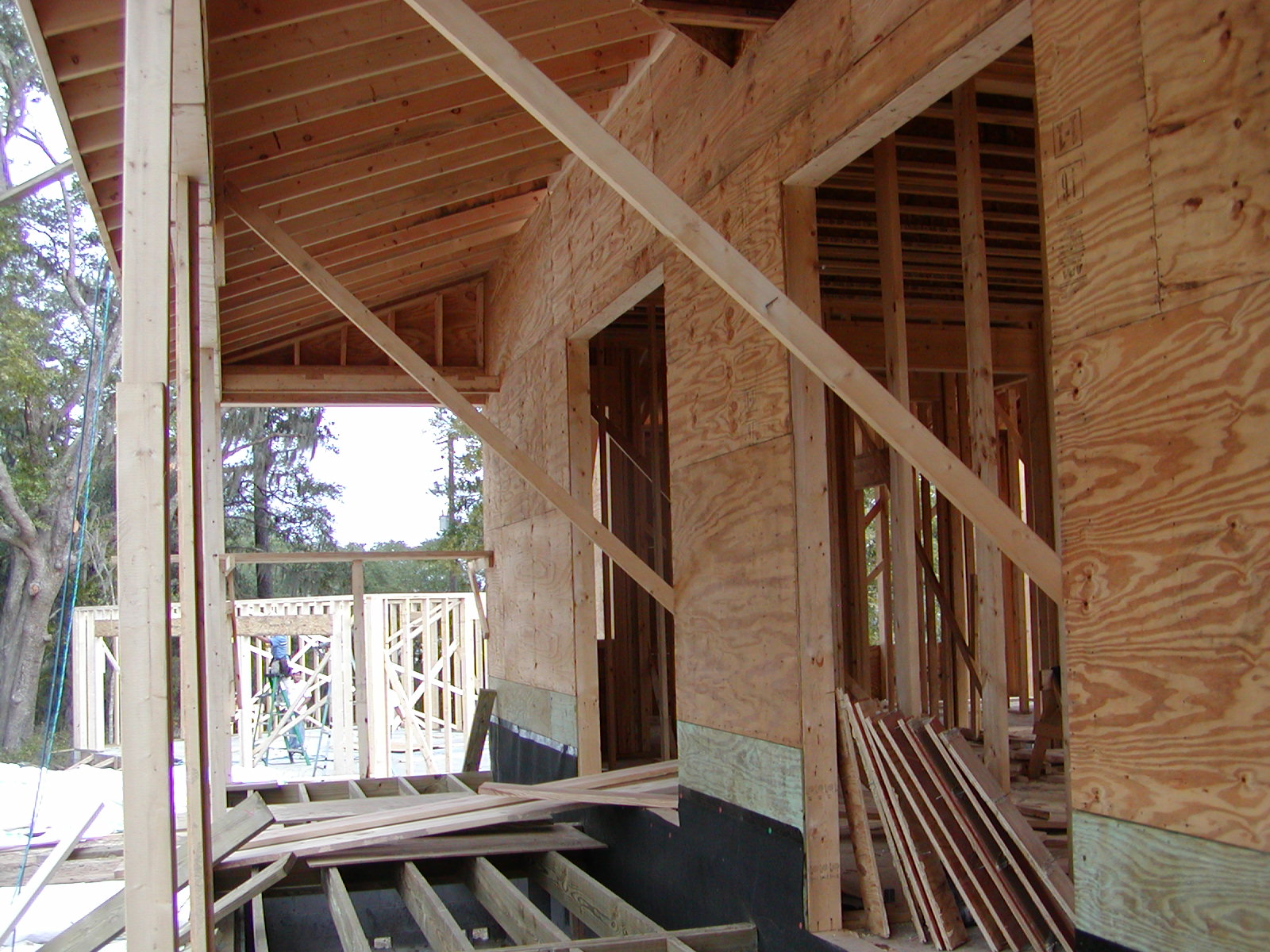 October 31, 2007 -- This is the rear porch. The large opening on the right will be a doorway. The other opening will be double large windows. | ![]() |
