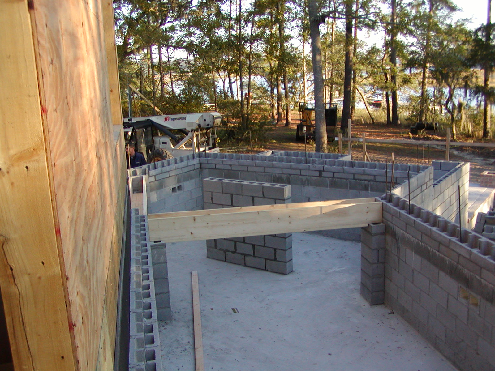 November 8, 2007 -- The wooden beams will be poured with concrete when the deck is poured. They will form strong concrete beams. | ![]() |