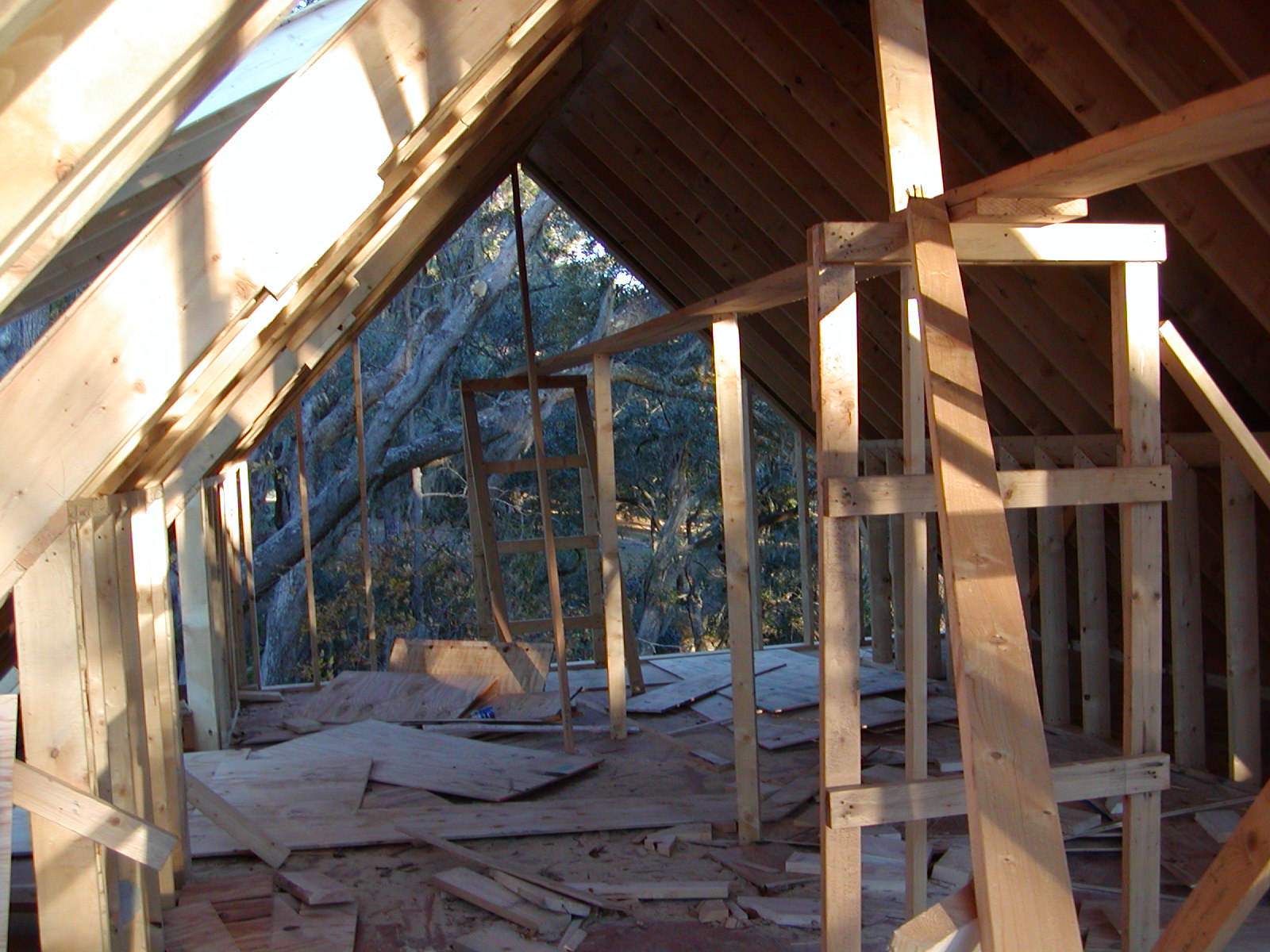 November 28, 2007 -- The garage upstairs will be a storage area. It will not be finished inside. The far end has a window down near the floor in the center. | ![]() |