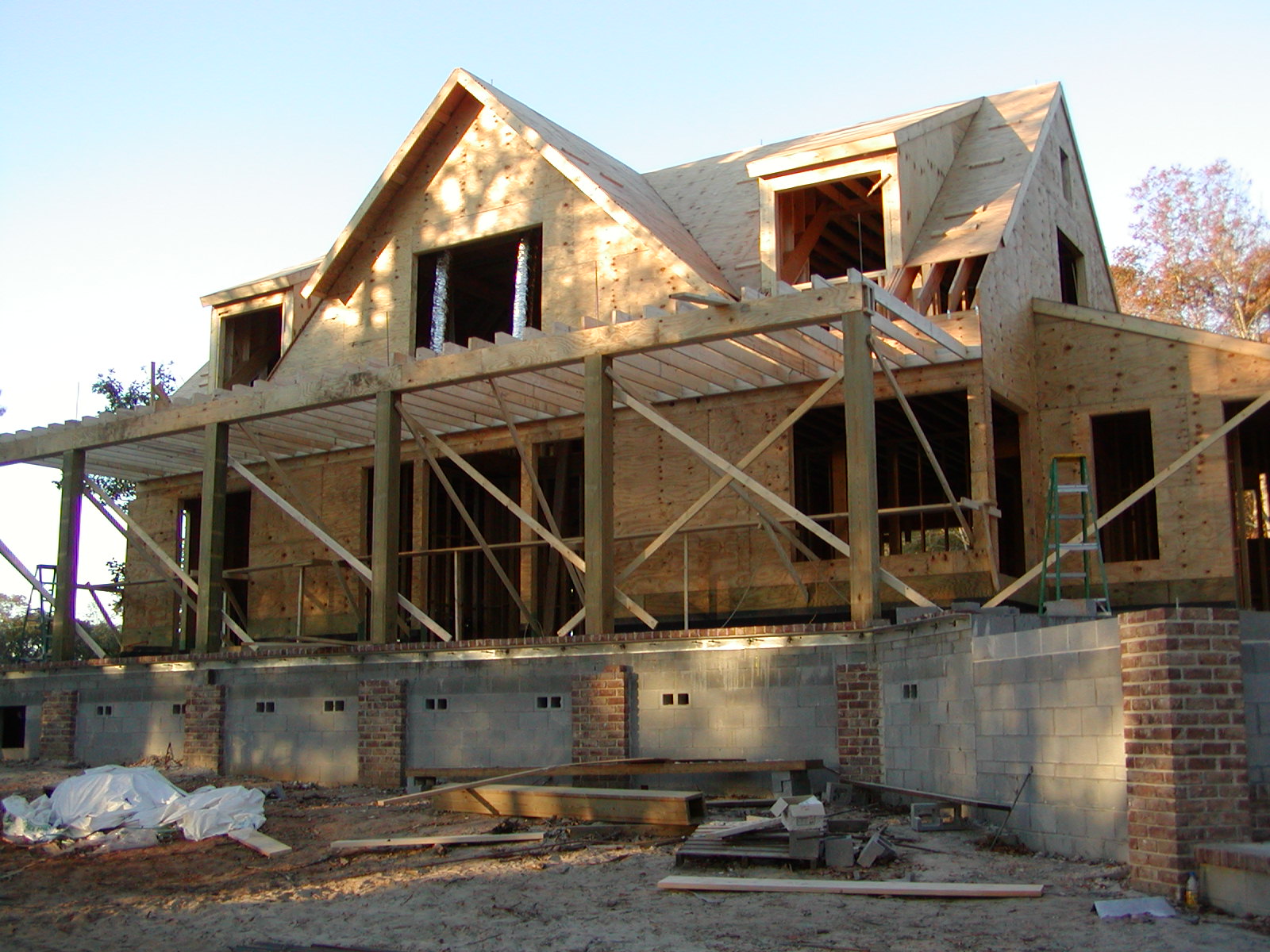December 6, 2007 -- The front (river side) porch is being built. The beam, columns and ceiling joists were erected yesterday. | ![]() |