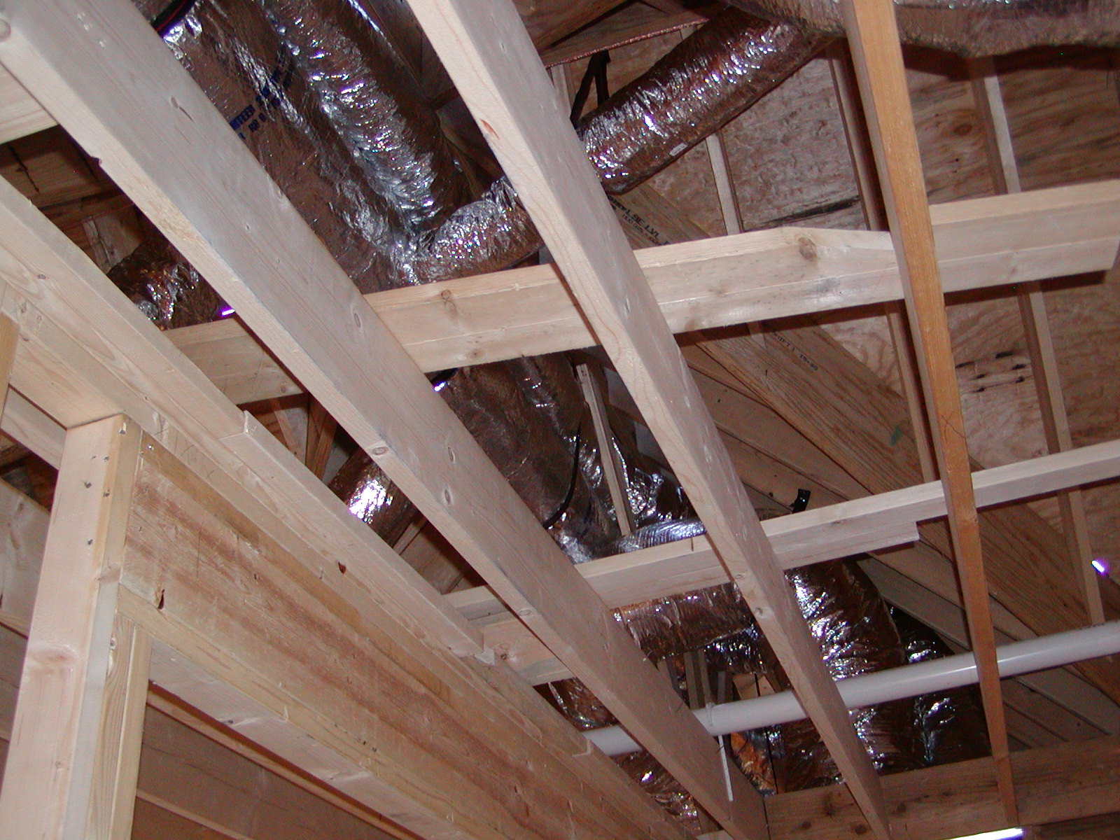 December 6, 2007 -- The HVAC (heating, ventilation and air conditioning) system is also being installed. The attic has lots of supply and return lines. | ![]() |