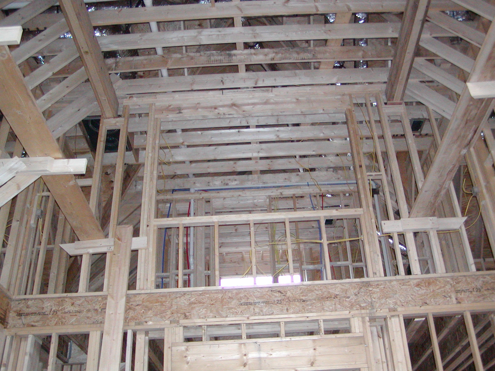 December 11, 2007 -- This is the living room as viewed from the front (river side) door. If you look closely, you can see the opening to the upstairs hallway. You can also see the center two beams. | ![]() |