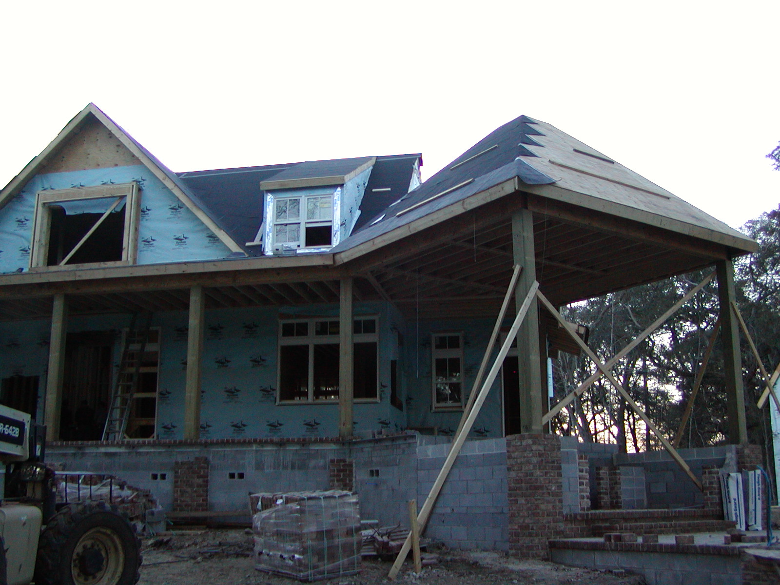 December 19, 2007 -- From the front of the house, you can see several windows are installed. The outdoor kitchen roof is also taking shape. | ![]() |