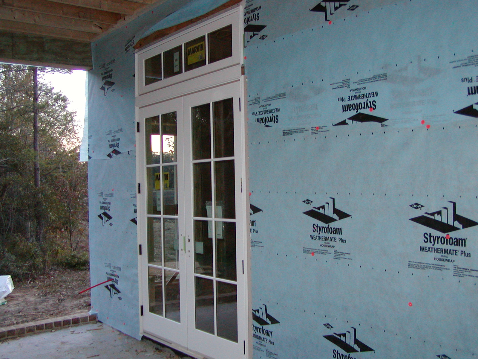 December 19, 2007 -- The master suite door opens to the front (river side) porch. Brick is being laid on the porch today. | ![]() |