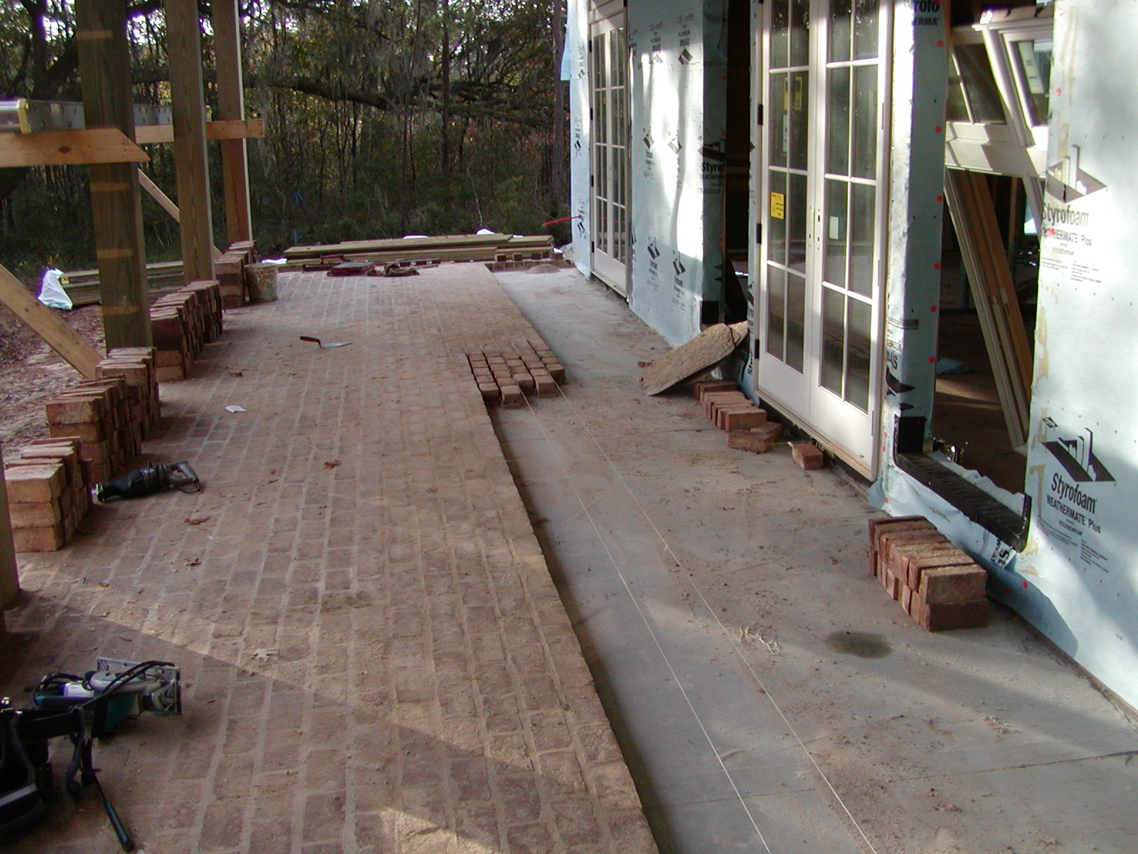 January 9, 2008 -- Brick paving continues on the front (river side) porch. This was delayed a few days due to rain. | ![]() |