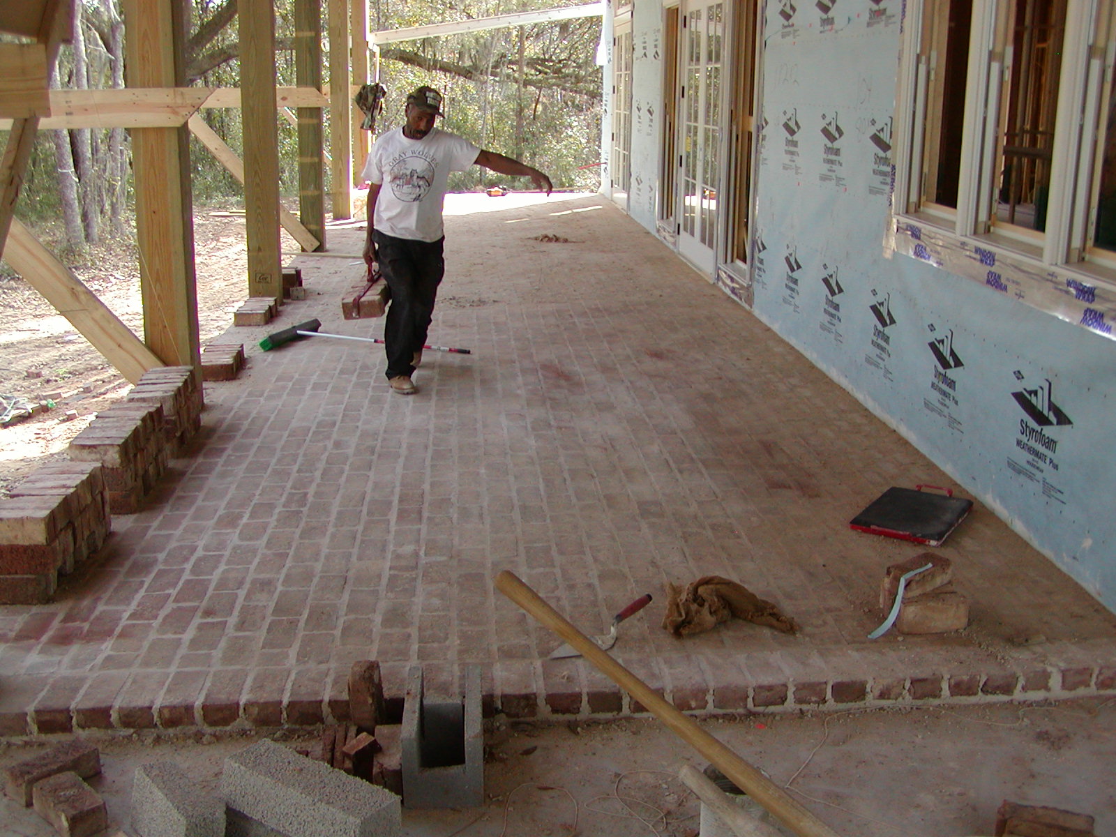 January 10, 2008 -- The brick is finished on the long stretch of the front (riverside) porch. Brick will be completed on the front porch soon. | ![]() |