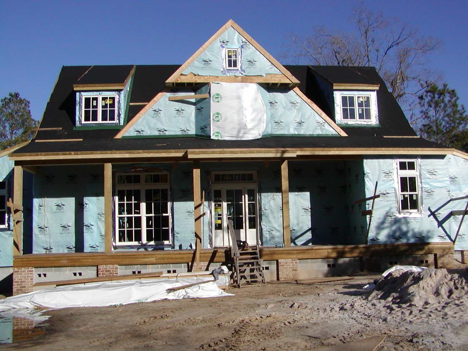 January 14, 2008 -- The sashes are now in the large windows that overlook the rear porch. The windows are over 7' tall plus the transom. | ![]() |