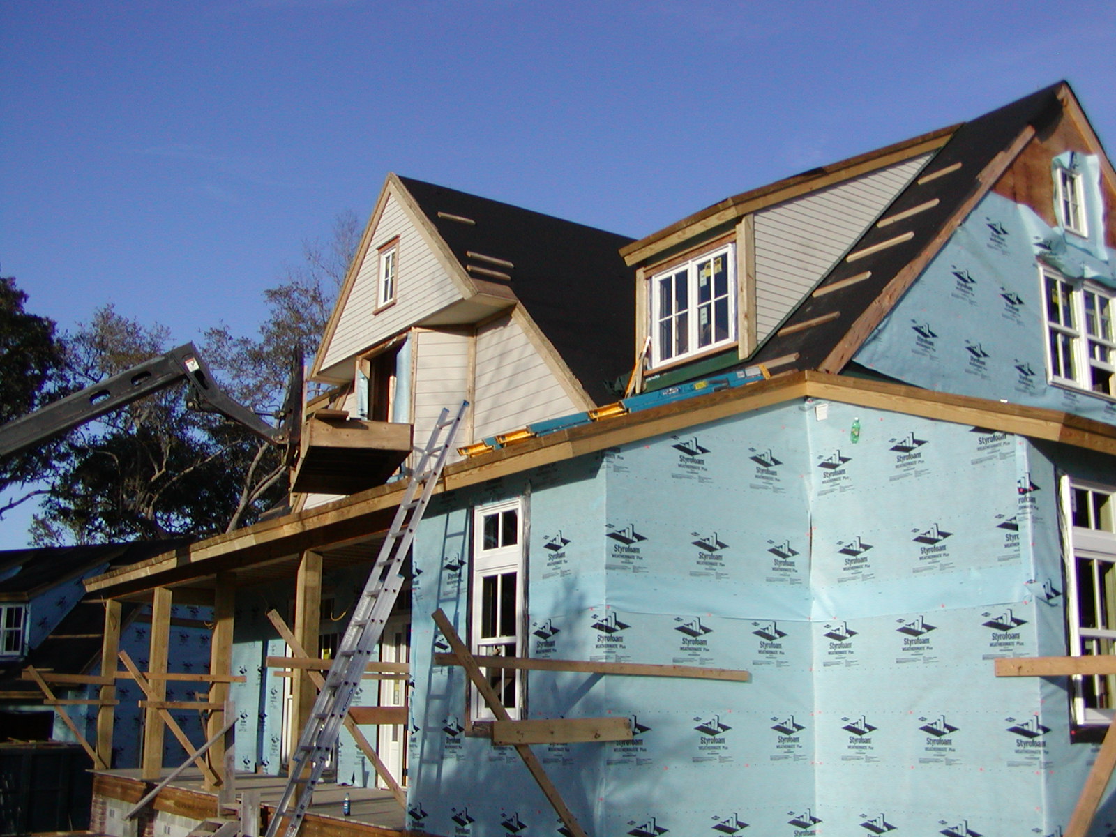 January 21, 2008 -- Siding is being installed on the dormers and gables. All of the house dormers and gables should have exterior trim and siding within a few days. | ![]() |