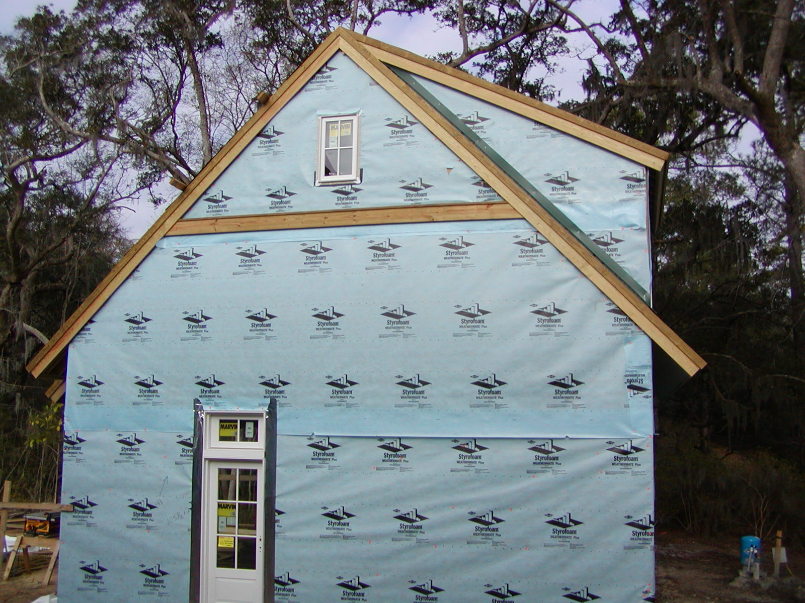 January 23, 2008 -- The garage exterior trim is on the roof lines. The door will have a small shed roof over it soon. | ![]() |