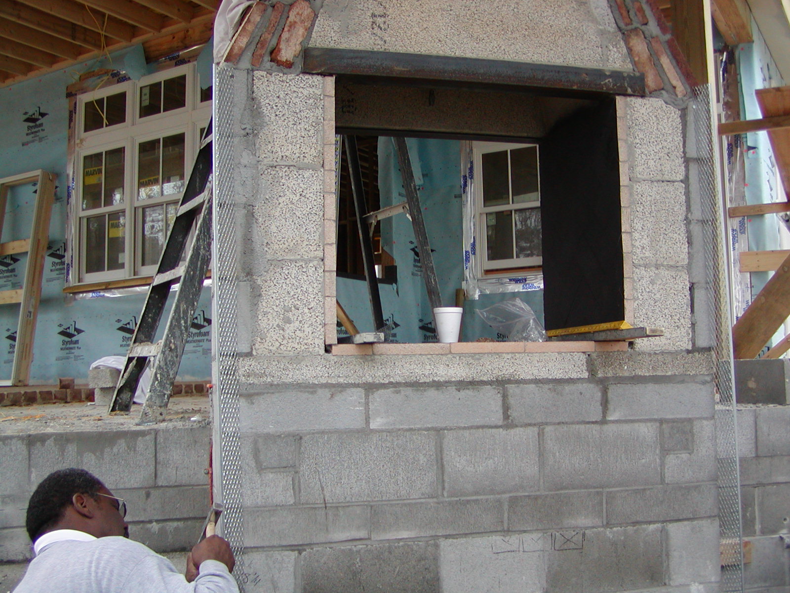 February 5, 2008 -- Stucco work has begun on the chimney. It will be a light color (ivory buff) tabby stucco. | ![]() |