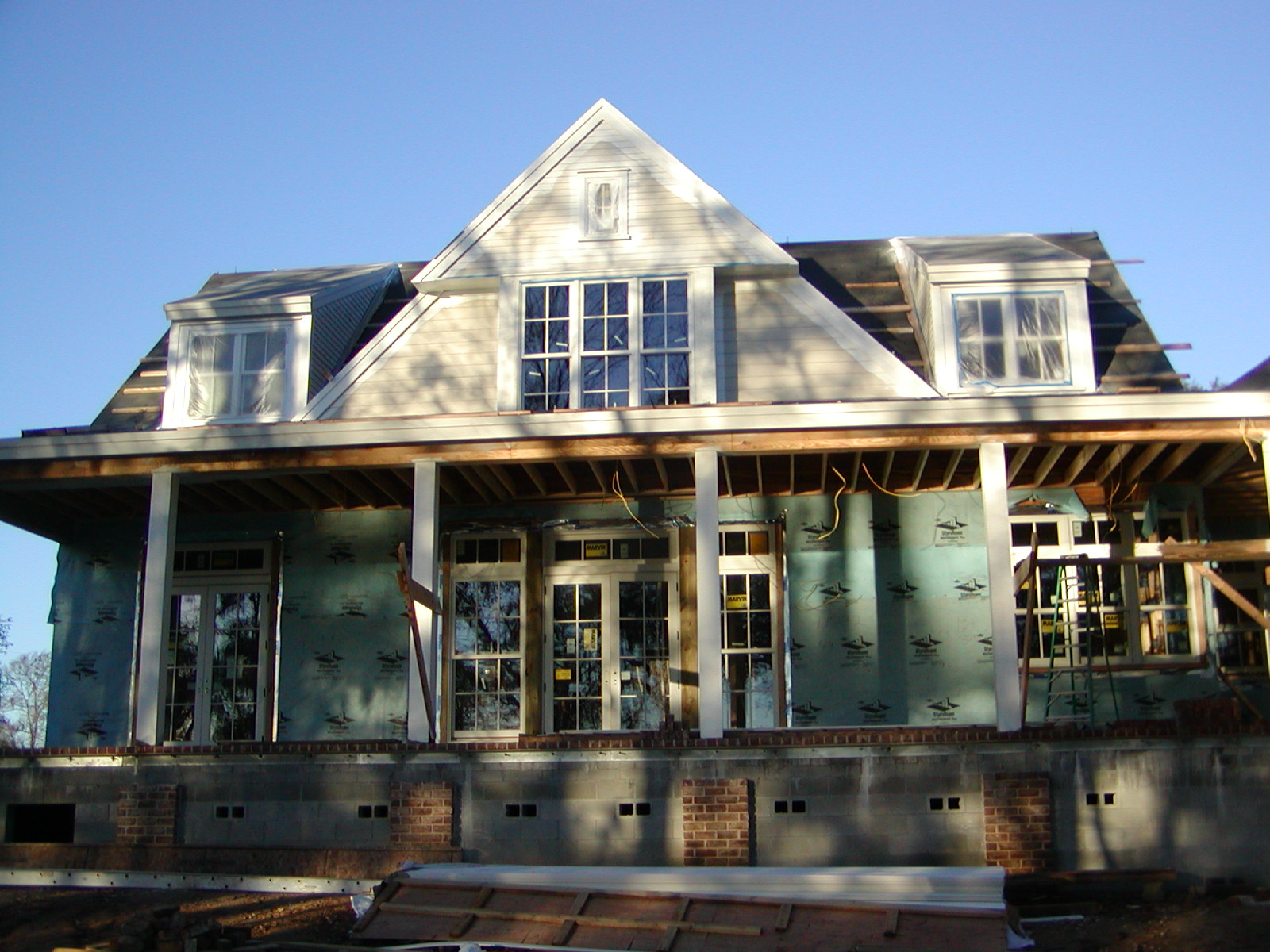 February 7, 2008 -- The window trim is now painted. Trees are casting a shadow on the front of the house this morning. | ![]() |