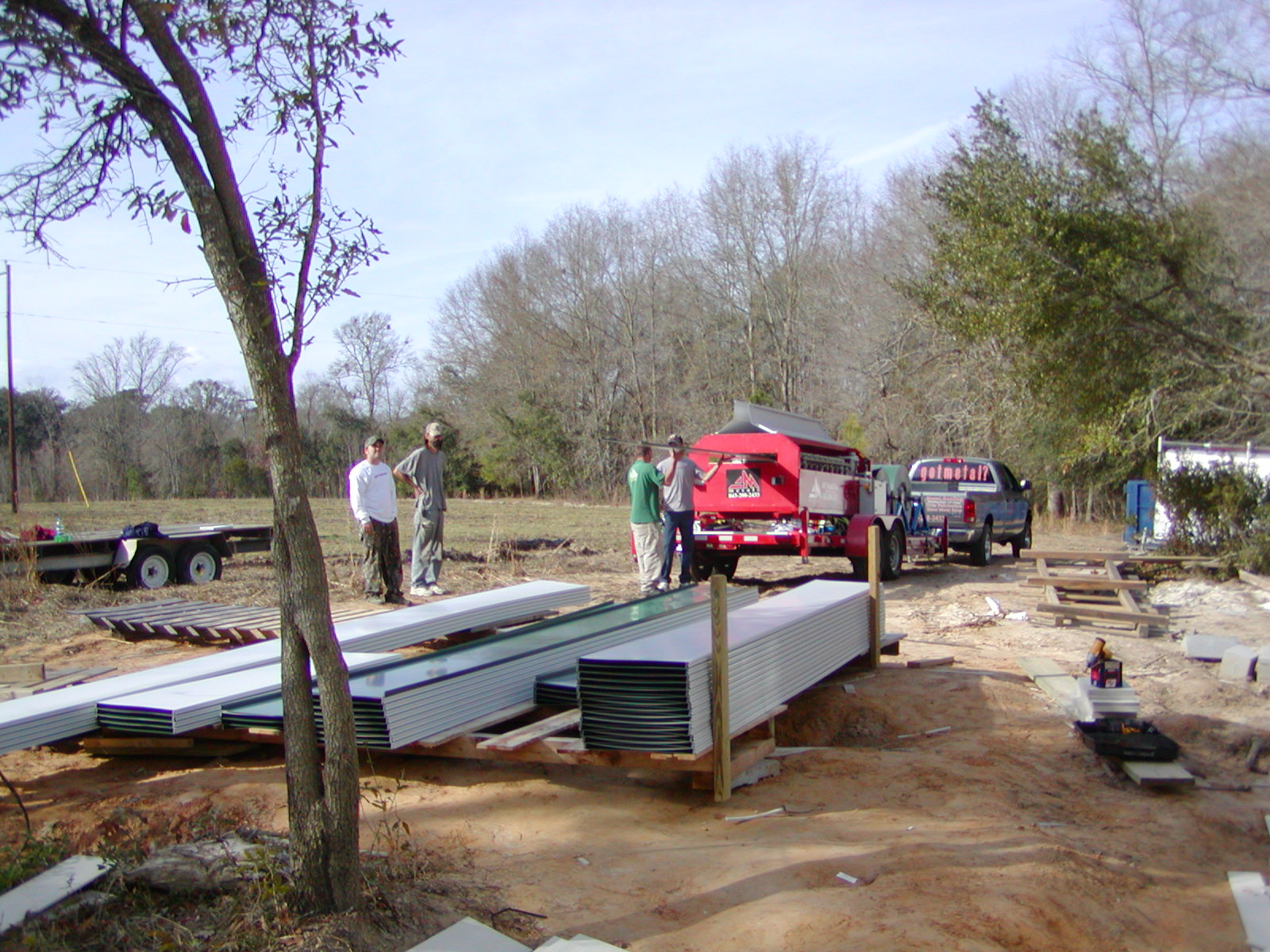 February 12, 2008 -- Panels are stacked ready to install. The roof is standing seam aluminum roofing. Aluminum was chosen since the residence is not far from salt water. | ![]() |