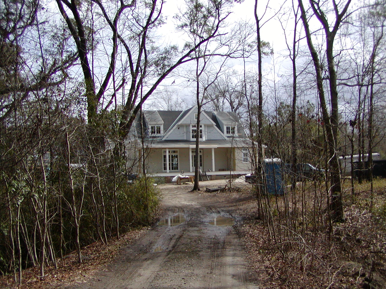 February 13, 2008 -- The roofers were not able to work today. There was a good bit of rain last night. (Notice the puddles.) They will be back tomorrow. This is the view driving up to the house. | ![]() |