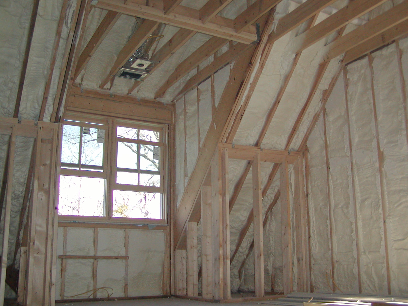 March 12, 2008 -- The roof and exterior walls have foam insulation. Doing this keeps the attic temperatures within a few degrees of the inside temperatures. | ![]() |