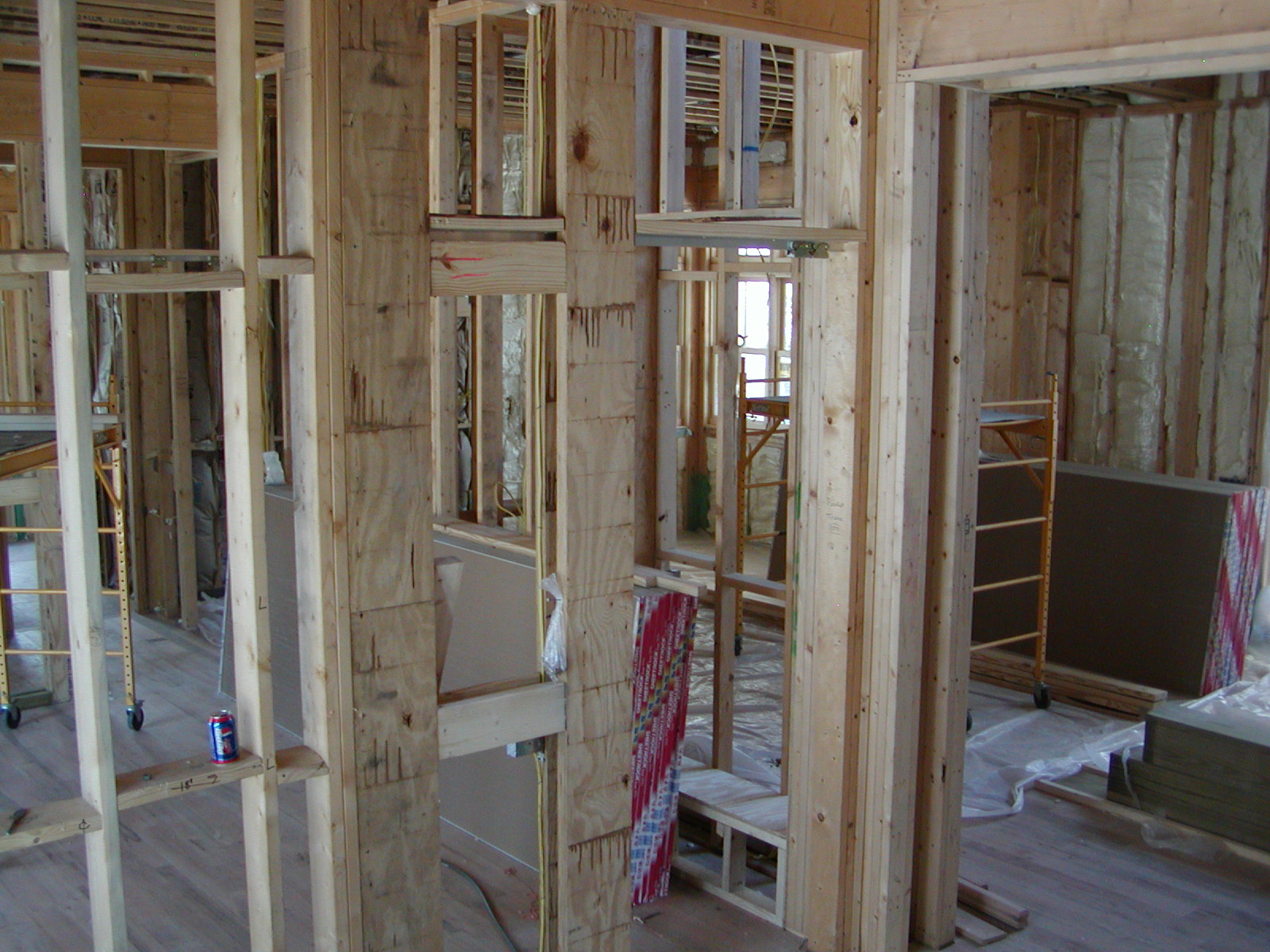 March 17, 2008 -- The pocket door tracks are installed. A transom will go above most of the downstair doors. | ![]() |