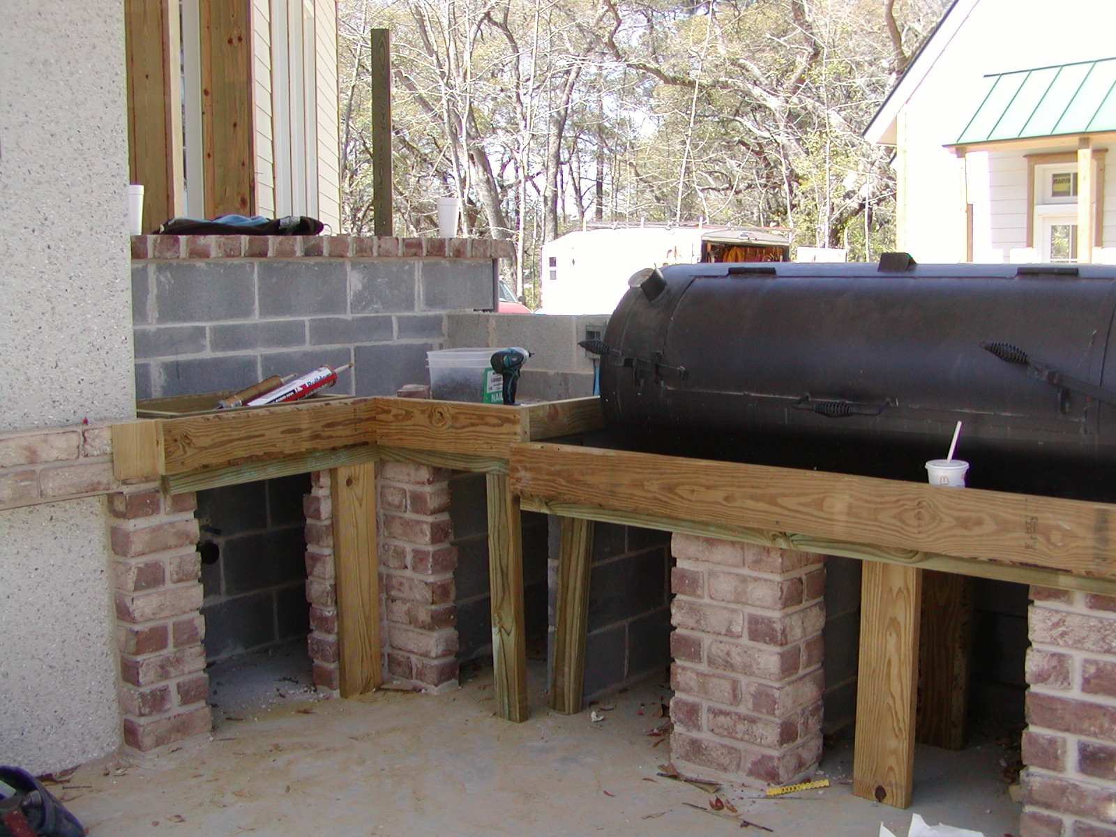 March 21, 2008 -- Forms are begin built in the outdoor kitchen for the counter top. It will be tile on top of poured concrete. Tiling will begin next week. | ![]() |