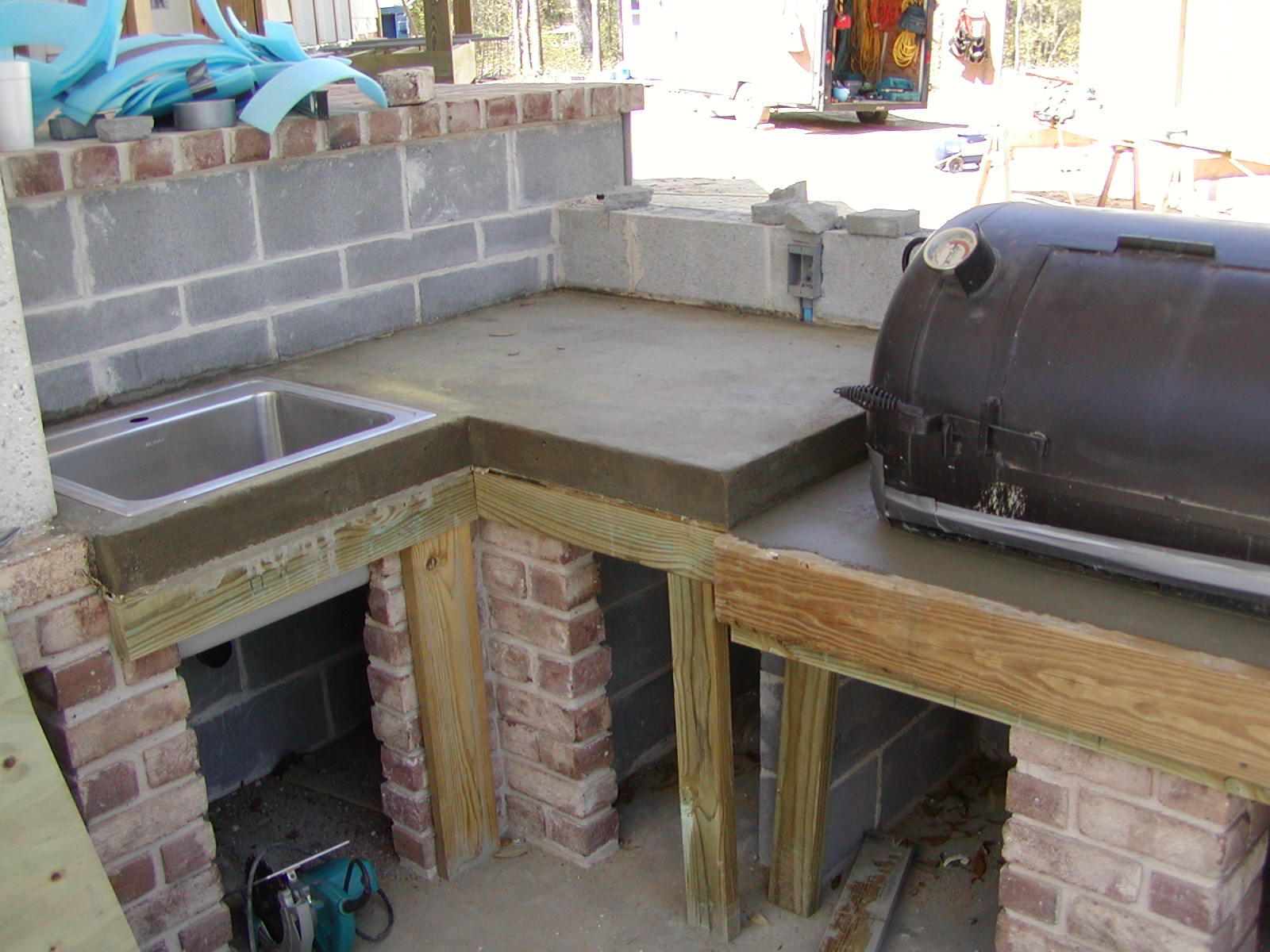 March 25, 2008 -- The right side of the kitchen has a sink and smoker. The form boards will be taken down in the next day or so. | ![]() |