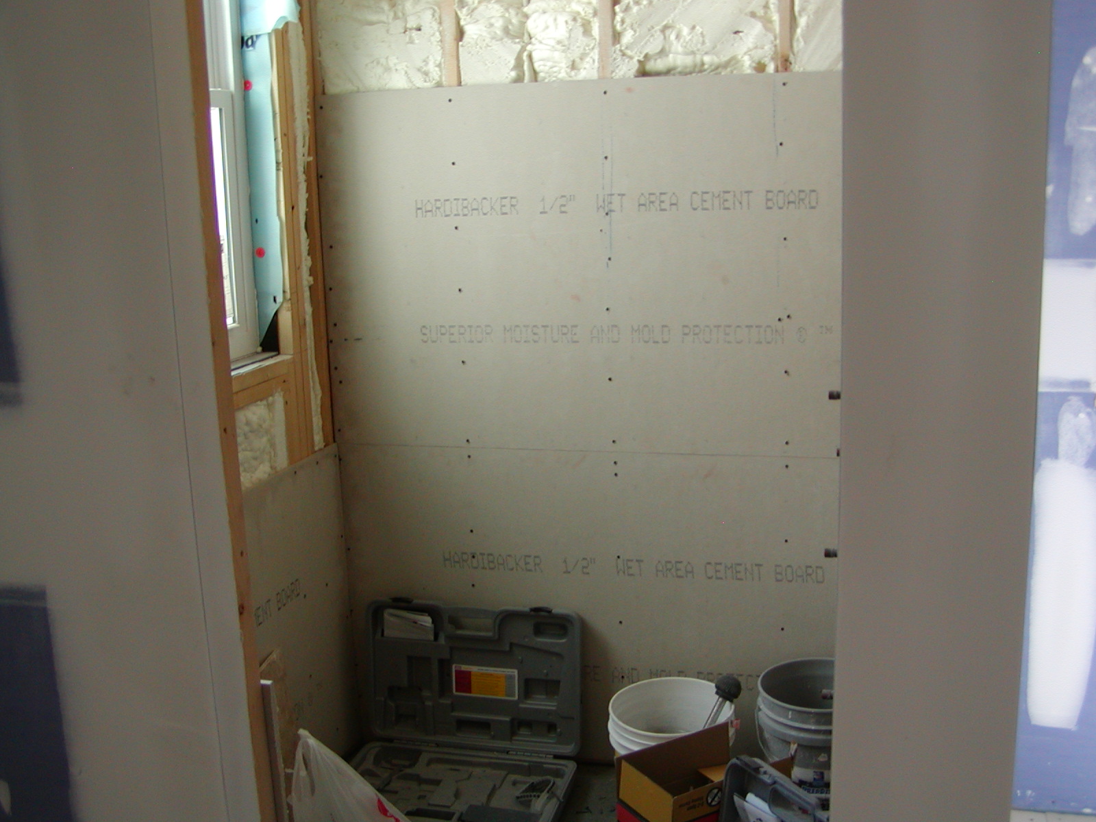 March 25, 2008 -- The master shower is being prepped for tiling. The floor, walls and ceiling will be tiled. | ![]() |