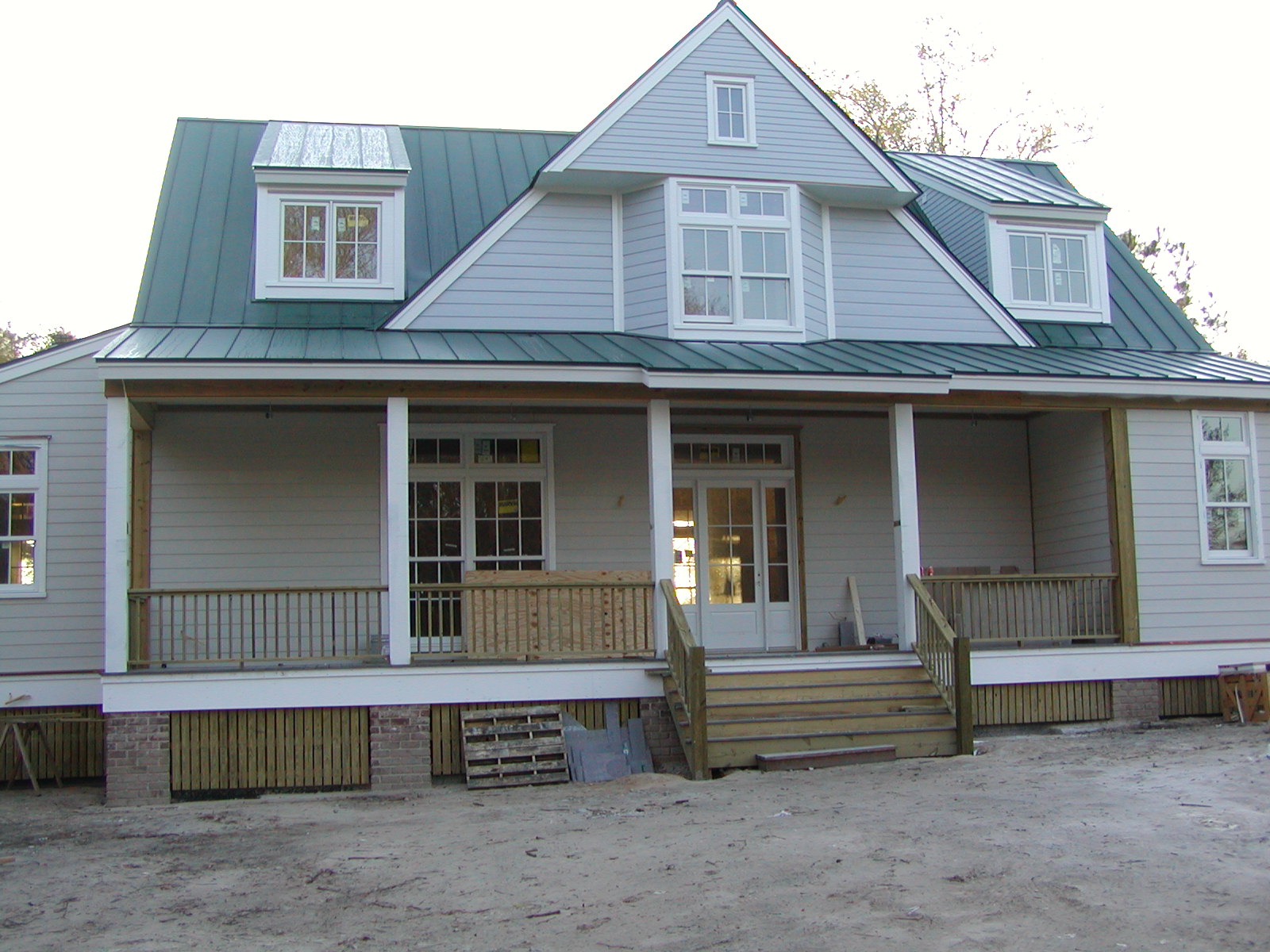 March 28, 2008 -- The drive side of the house has railings and permanent steps. The gap below the hog fencing will be hidden with landscaping. | ![]() |