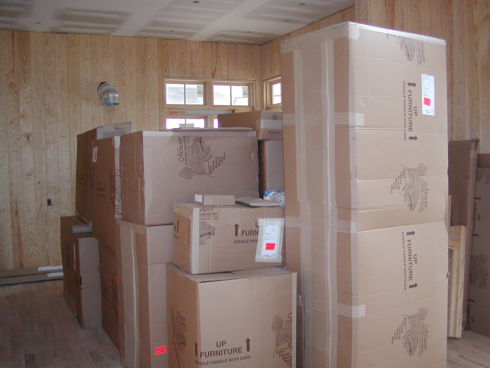 April 4, 2008 -- The kitchen cabinets have arrived. They will be installed the first of next week. | ![]() |