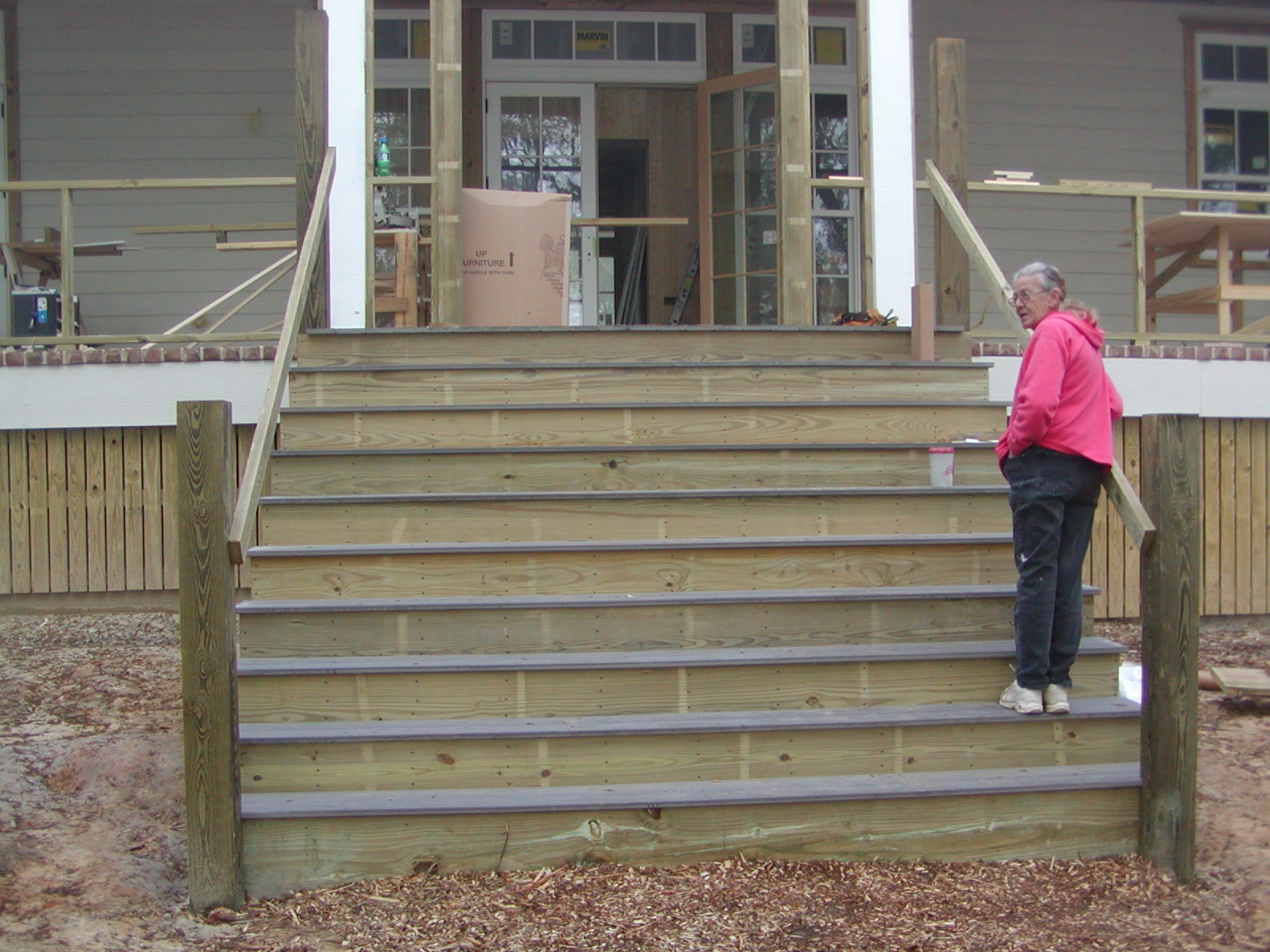 April 10, 2008 -- The front (river side) steps are being completed. They are about 12' wide. | ![]() |