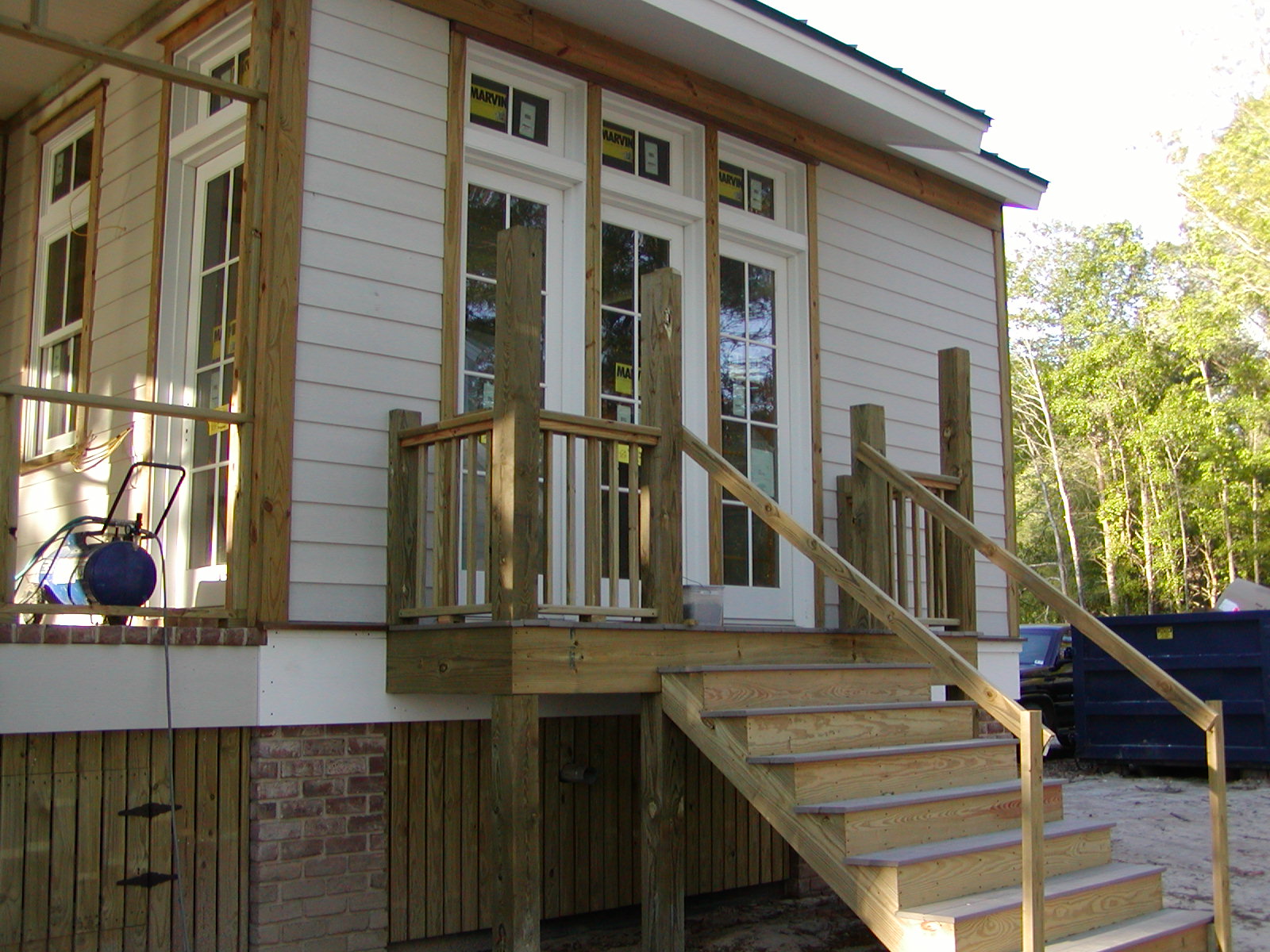 April 16, 2008 -- The side door deck has rails around the landing. The siding along the drip rail is also replaced. | ![]() |