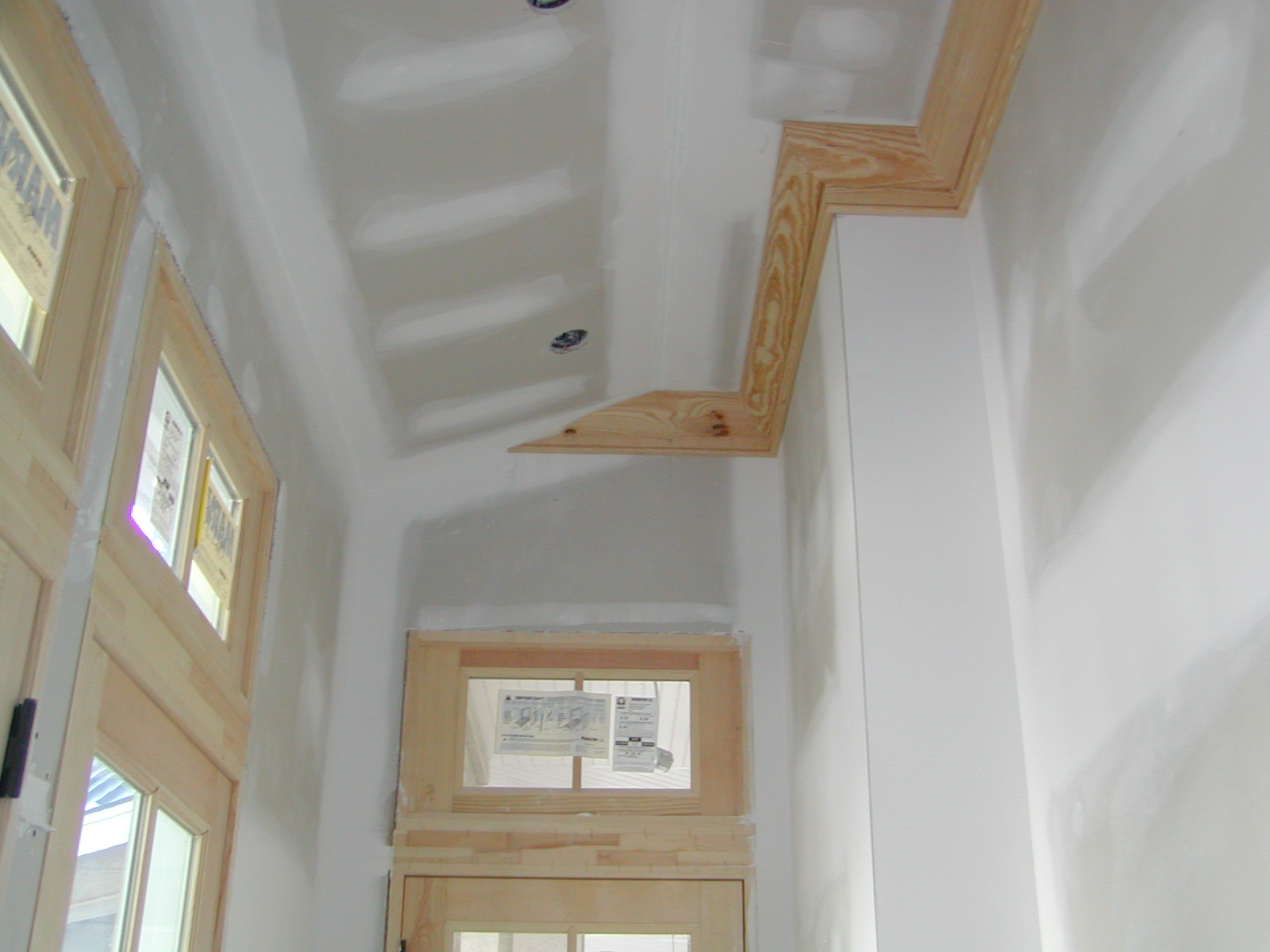 April 17, 2008 -- The crown moulding "dies" into the ceiling in the mud hall where the ceiling changes from flat to sloping. | ![]() |