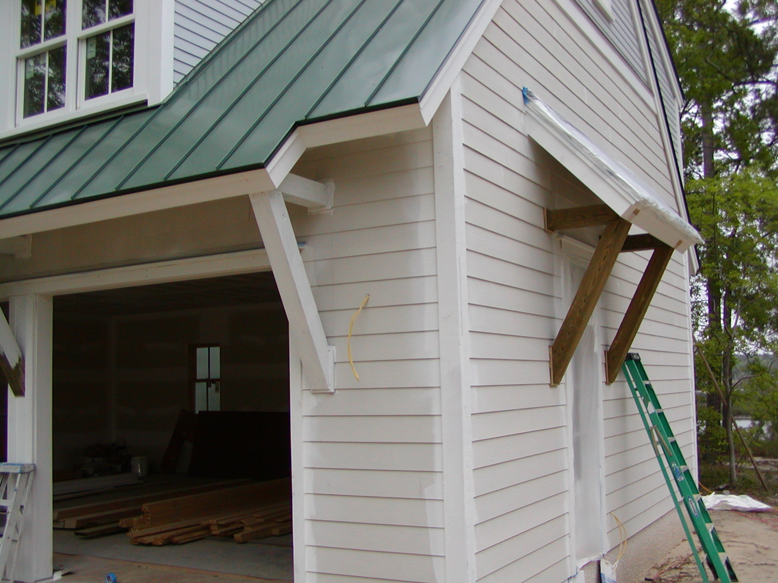 April 23, 2008 -- Braces have now been installed on the garage overhangs. Some of them are already primed. | ![]() |