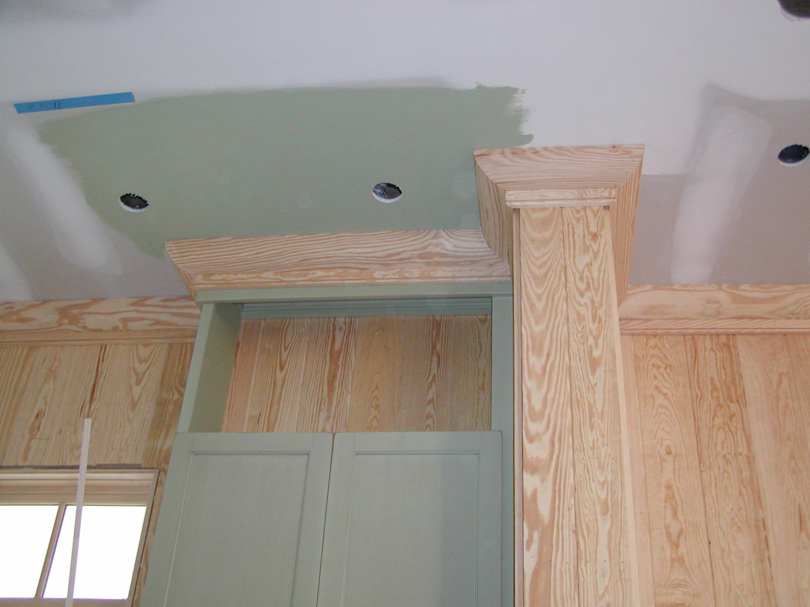 April 24, 2008 -- In various places, sample colors have been painted on the walls and ceiling. The paint on the ceiling is what color the ceiling will be. | ![]() |
