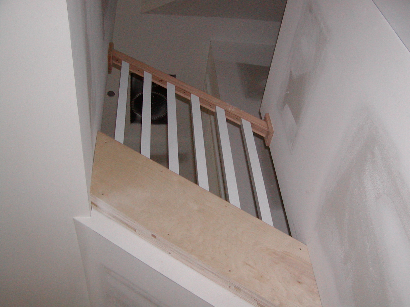 May 23, 2008 -- Near the top of the stairs, a short section of handrailing has been installed on a beam as can be seen in this photo. | ![]() |