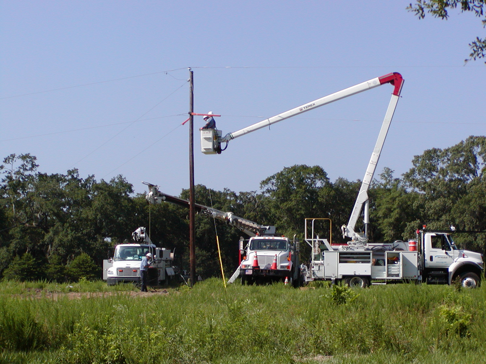 June 5, 2008 -- Power will be turned on today. A wire is being pulled from the pole to the house. | ![]() |