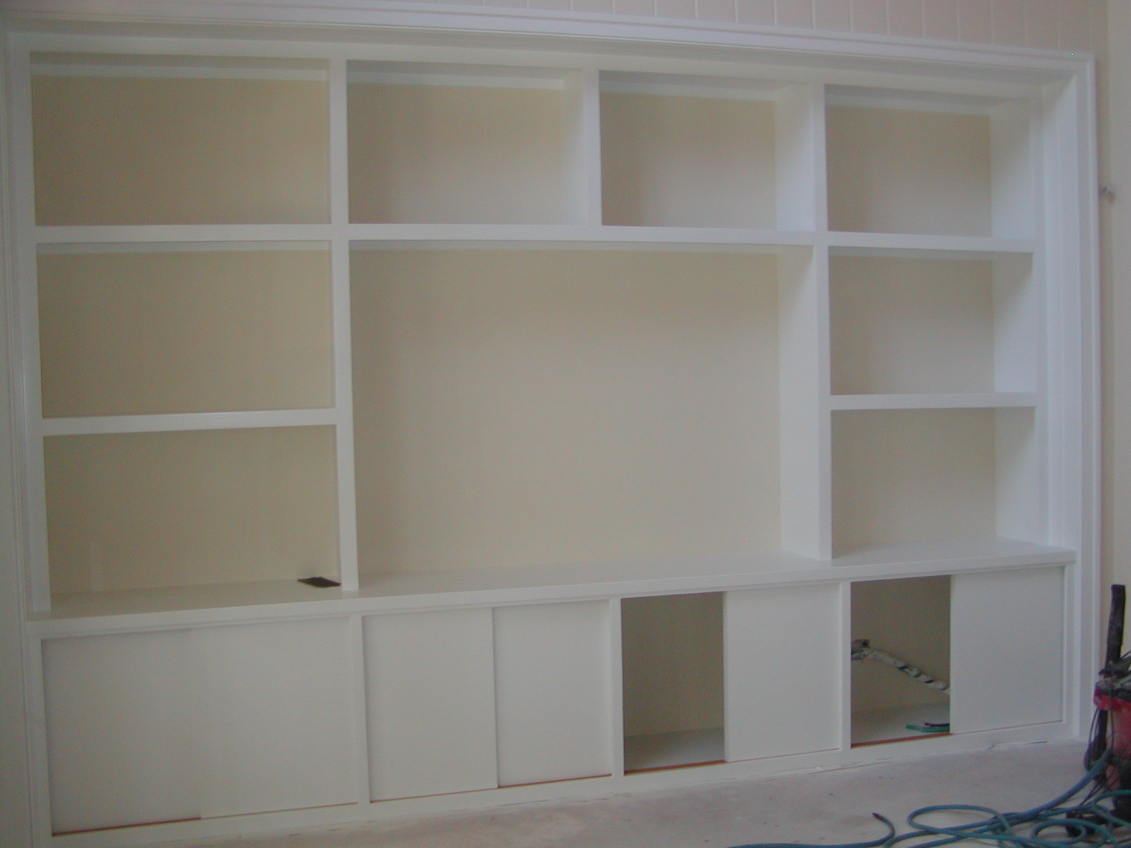 June 6, 2008 -- The living room displace case and storage is about finished. The doors are installed, but don't have their pulls installed yet. | ![]() |
