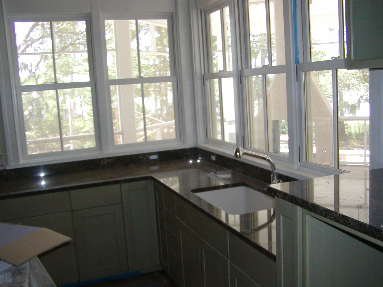 June 6, 2008 -- The cabinets are now uncovered. The kitchen area is very bright during the day. The cabinets are green although it does not show too well in this photo. | ![]() |