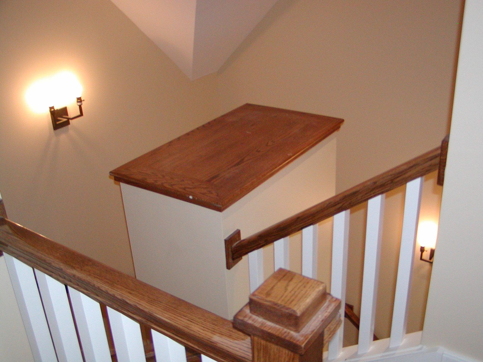 June 12, 2008 -- The plant shelf also has an oak top. This is the view from the top of the stairs. | ![]() |