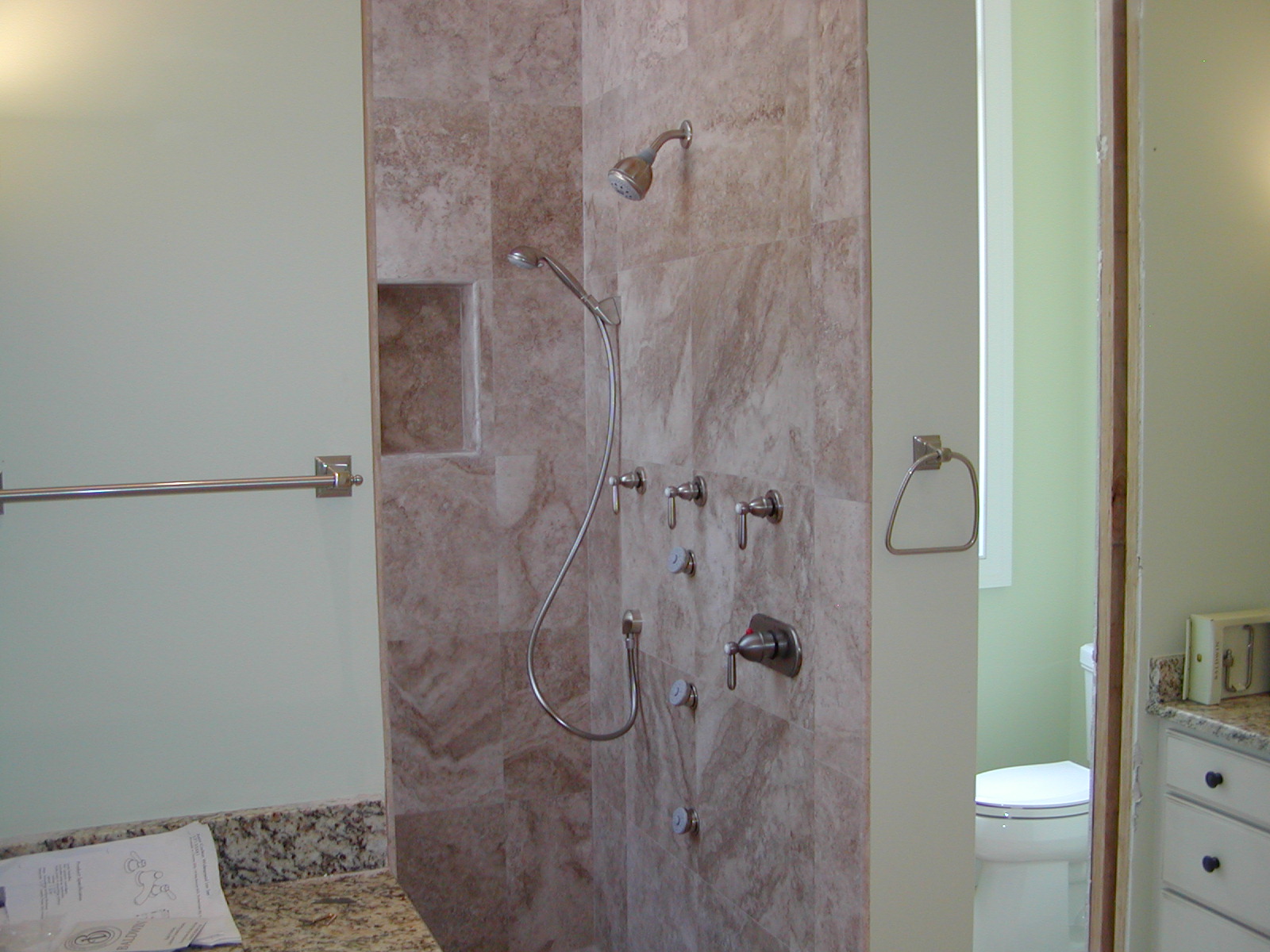 June 17, 2008 -- The master shower has lots of controls and sprays.