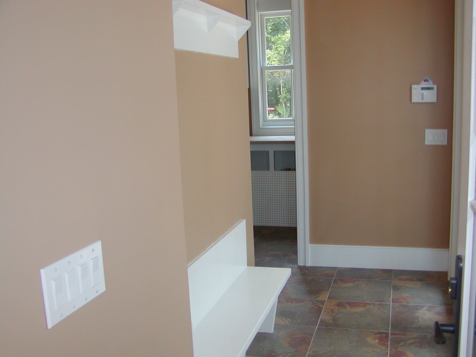 June 25, 2008 -- The mud hall has a built in bench and shelf. The shelf will have coat hooks installed on it in the next few days. | ![]() |