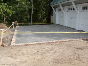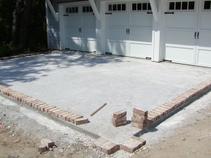 July 1, 2008 -- The garage apron will be poured tomorrow if all goes well. The surface will be oyster shell with a brick border.